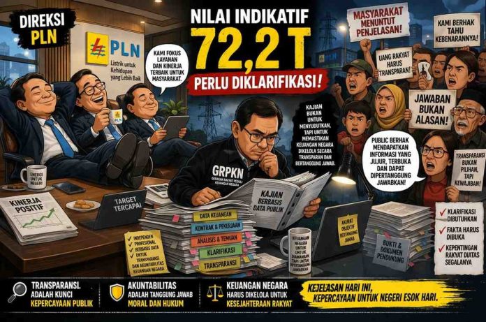 saranarakyat.com: Isu indikasi ketidaksesuaian senilai Rp72,2 triliun dalam data publik PT PLN (Persero) terus memanas. Angka besar yang diungkap dalam kajian Gerakan Rakyat Peduli Keuangan Negara (GRPKN) kini tidak hanya menjadi sorotan, tetapi juga memicu tekanan publik terkait kejelasan arah penanganannya.